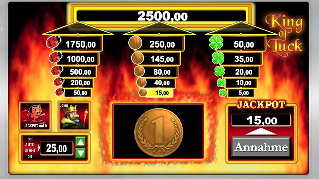 | Gewinnsymbole | Vierblättriger Klee (Glückssymbole), goldene Münze, Marienkäfer, King of Luck, die Sonne, der Teufel. |